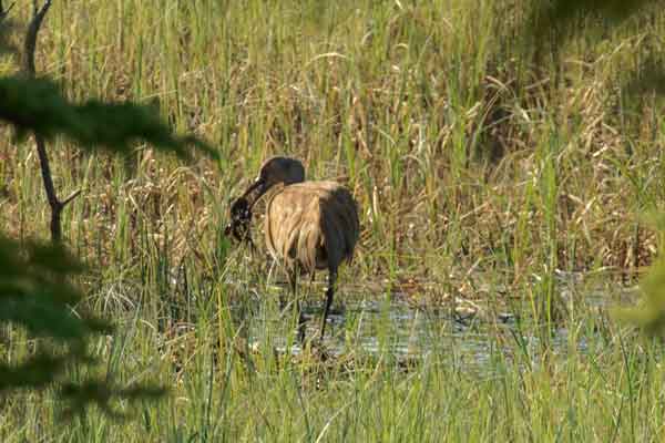 Crane eggs should hatch in 30 days. Incubation began on May 6th, 2016, but the eggs did not hatch on June 5th. In spite of the hatch failure, Millie and Roy continued to incubate night and day into mid-July. We suspect that the embryos drowned when the nest was flooded during the heavy rains of mid-May 2016.