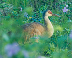 In 2002, the pair erturned in early May and nested. A face-off between crane and fox took place in mid-May. Nest defense was successful that year, since we spotted a small crane colt in mid-June. The Mew Gulls and Bonaparte's Gulls harassed the crane family as they wandered about the marsh. At the end of June, the colt had disappeared.