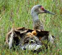 • Fratricide is not usually responsible for colt death - On webpages and in the published literature, it is repeatedly stated that the stronger crane colt kills the weaker one and thus two hatchlings yield one fledgling. We think that this is an error of interpretation, perpetuated by frequent repetition. It does not fit our observations. Bill-sparring between sibling colts is quite common, and certainly most crane pairs fledge only one of their hatchlings. However, over our years of observation, we have never seen the stonger colt (usually the first-hatched) injure the weaker one.